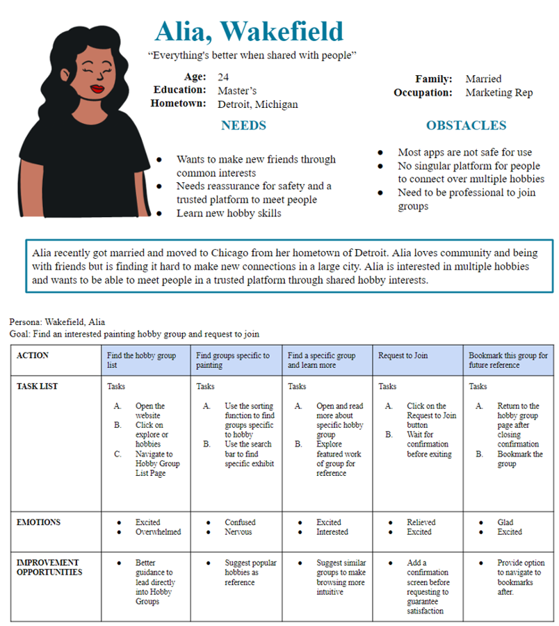 I conducted interviews, created personas, and produced empathy maps to understand user needs better. A primary user group identified through research was working adults who didn’t have time to tour art galleries in person.