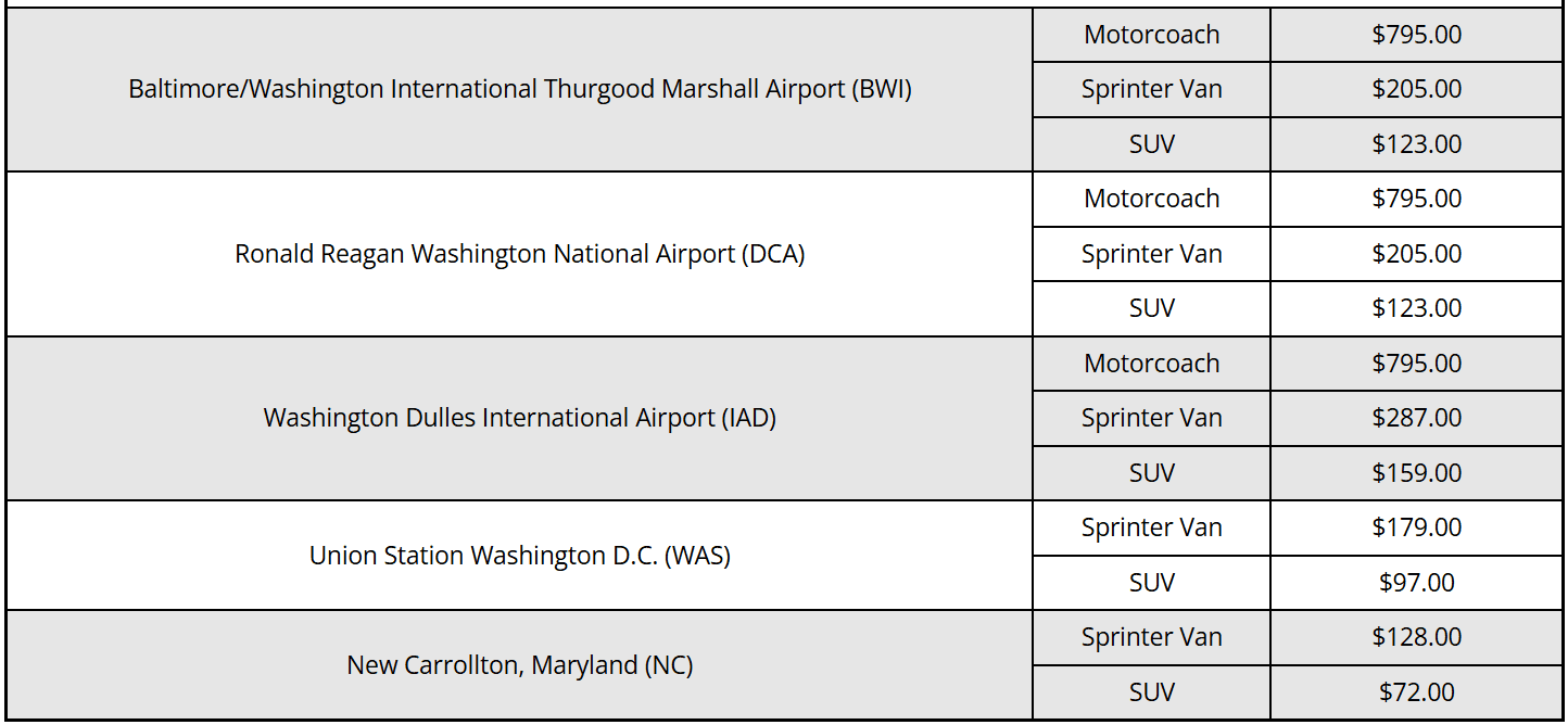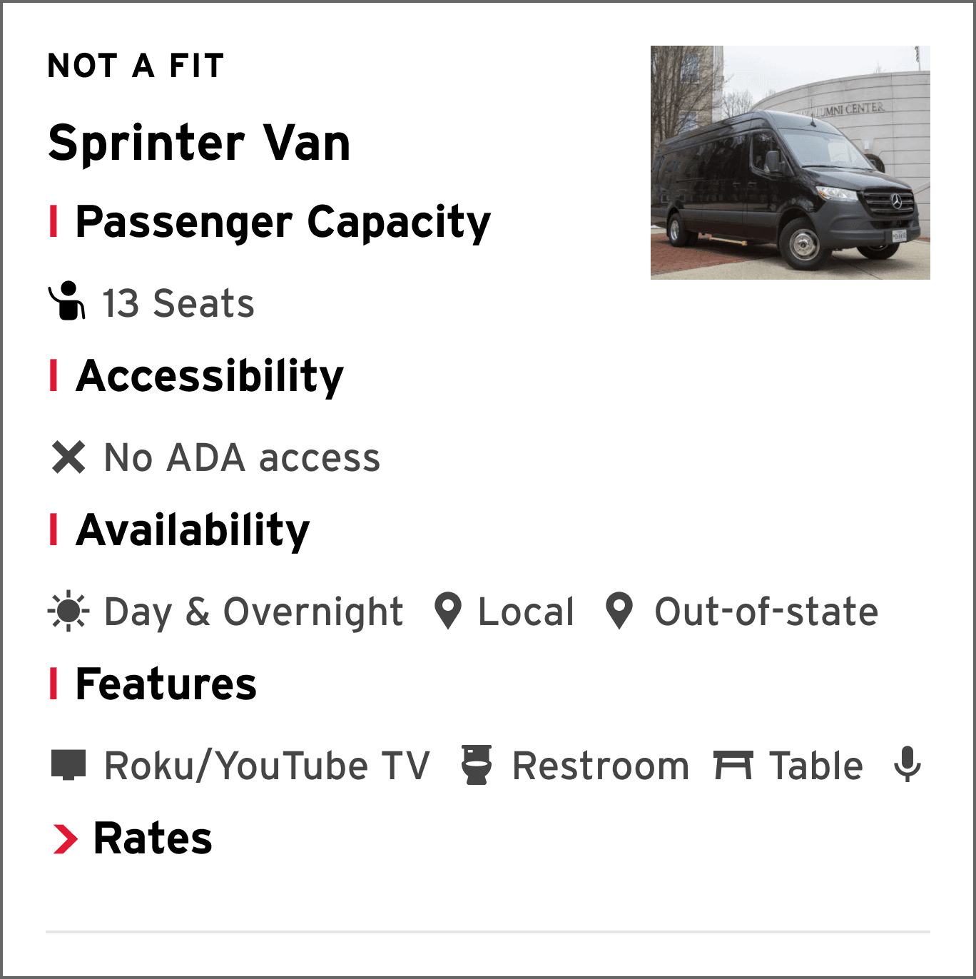 A “Best Fit” recommendation is calculated using passenger count, airport travel, and ADA needs.