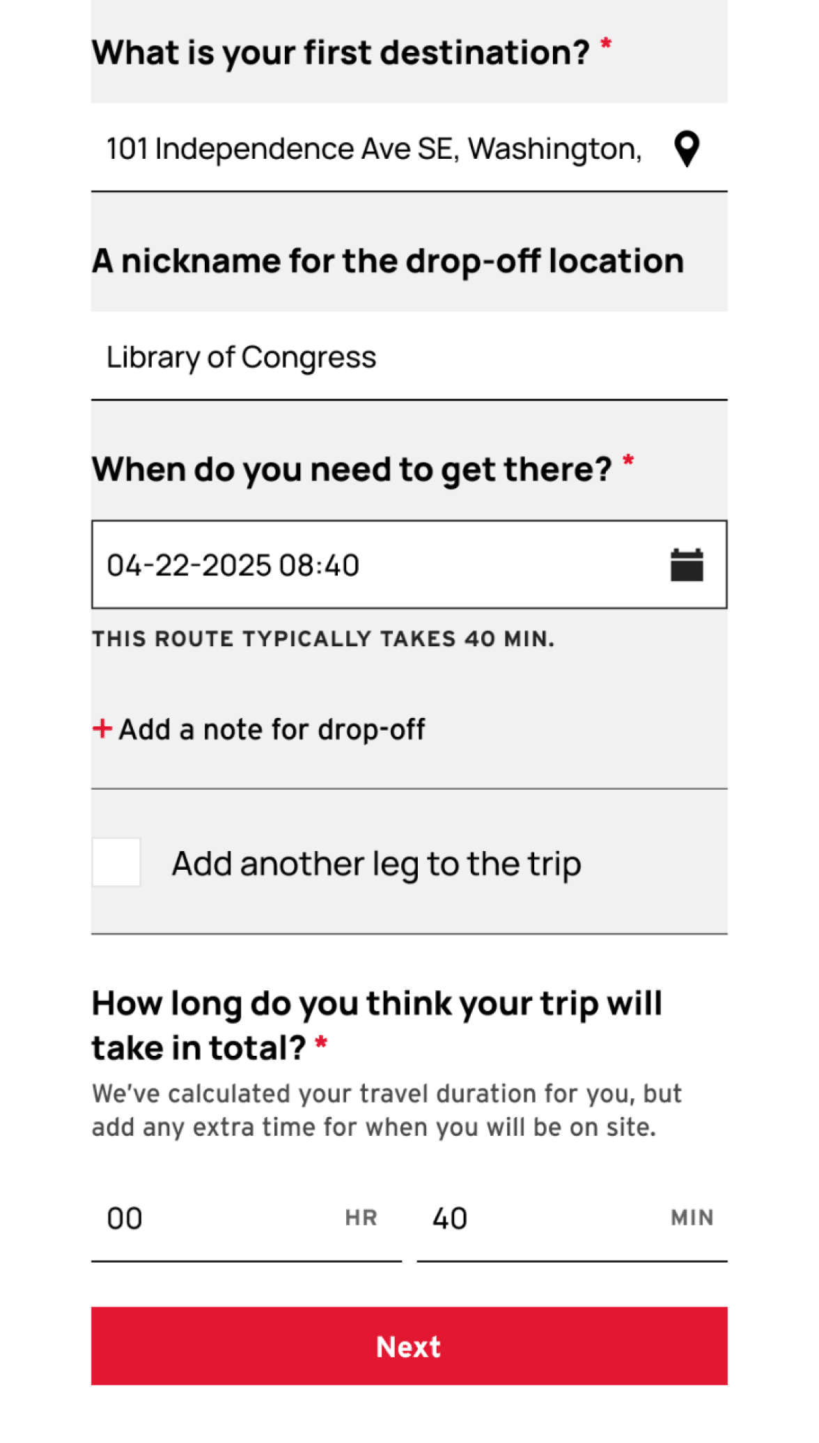 We grounded decisions in insights from a faculty member who had previously used the service, feedback from UMD transportation staff based on recurring complaints and heuristic evaluation of the existing site and form