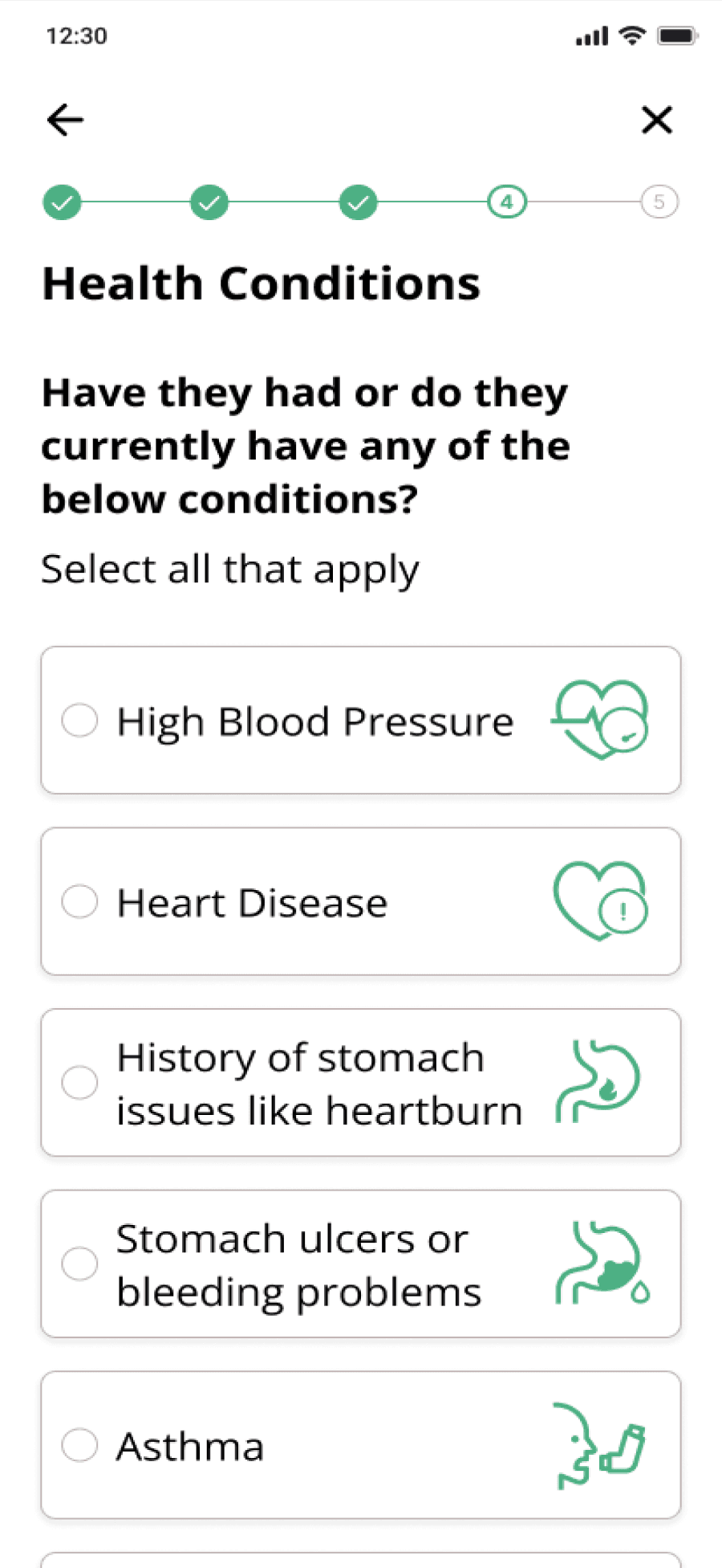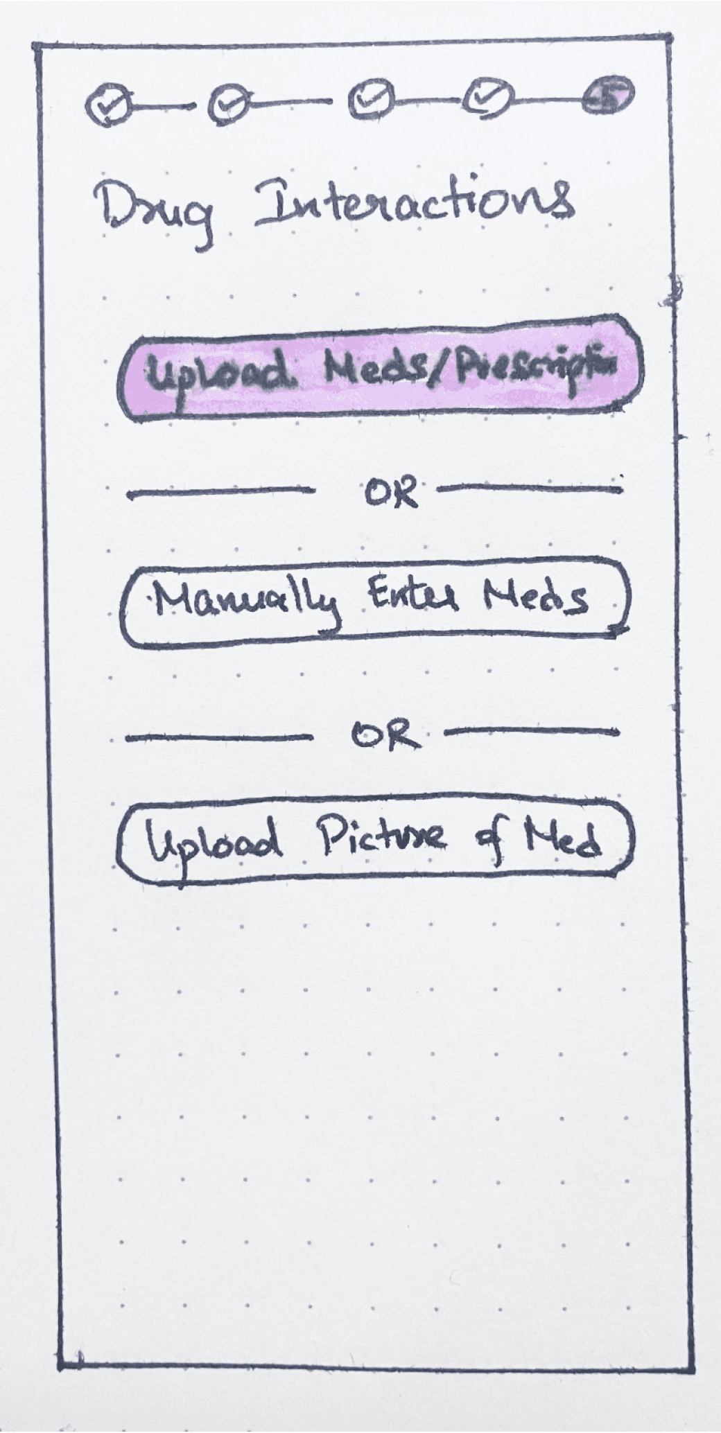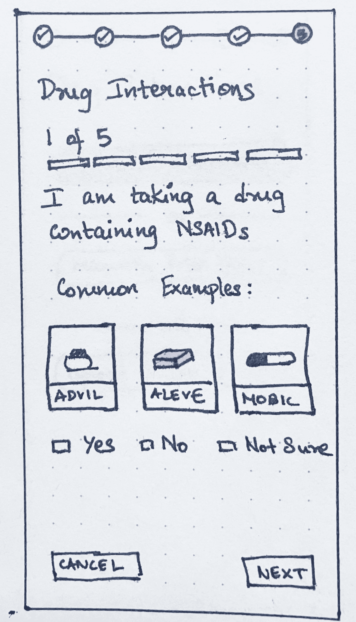 When the app asked users about medications they were already taking, the instinct in most health interfaces is to use generic iconography or text input which assumes users can retrieve medication names accurately on demand.