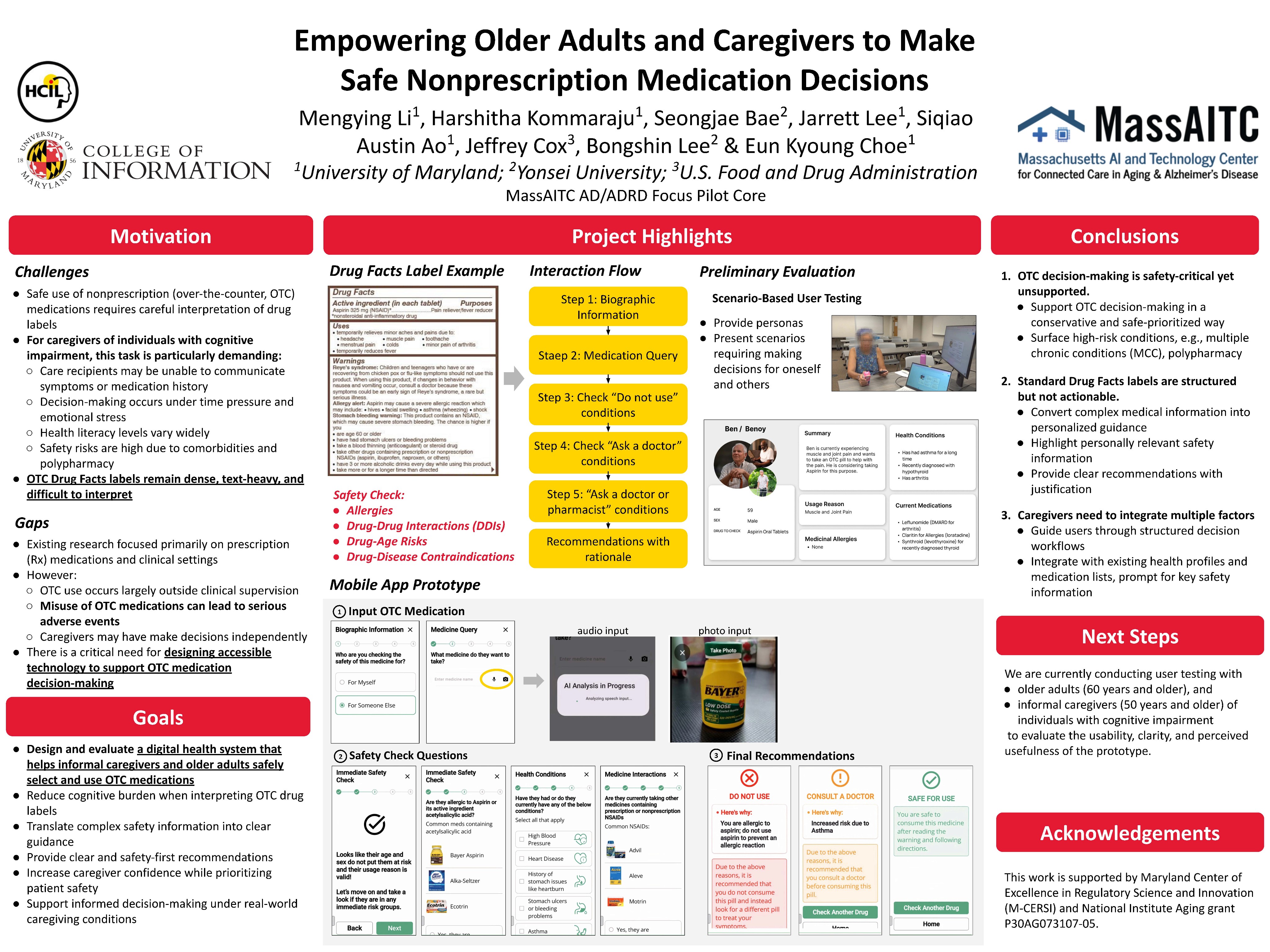 The goal was to convert the static drug label into a process-based interface that maps to how older adults actually make decisions and not how the label assumes they do, in collaboration with Yonsei University and the U.S. Food and Drug Administration.