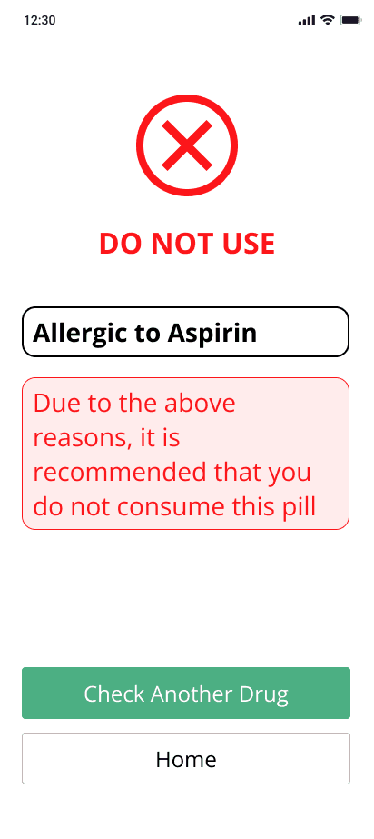 Although only the label-based version was implemented in Phase 1, the system-level approach was presented as a concept during testing. Participants, especially caregivers, consistently preferred this model, citing reduced cognitive load and the benefit of a reusable medication profile. This informed Phase 2 direction toward a persistent, system-driven interaction checker.
