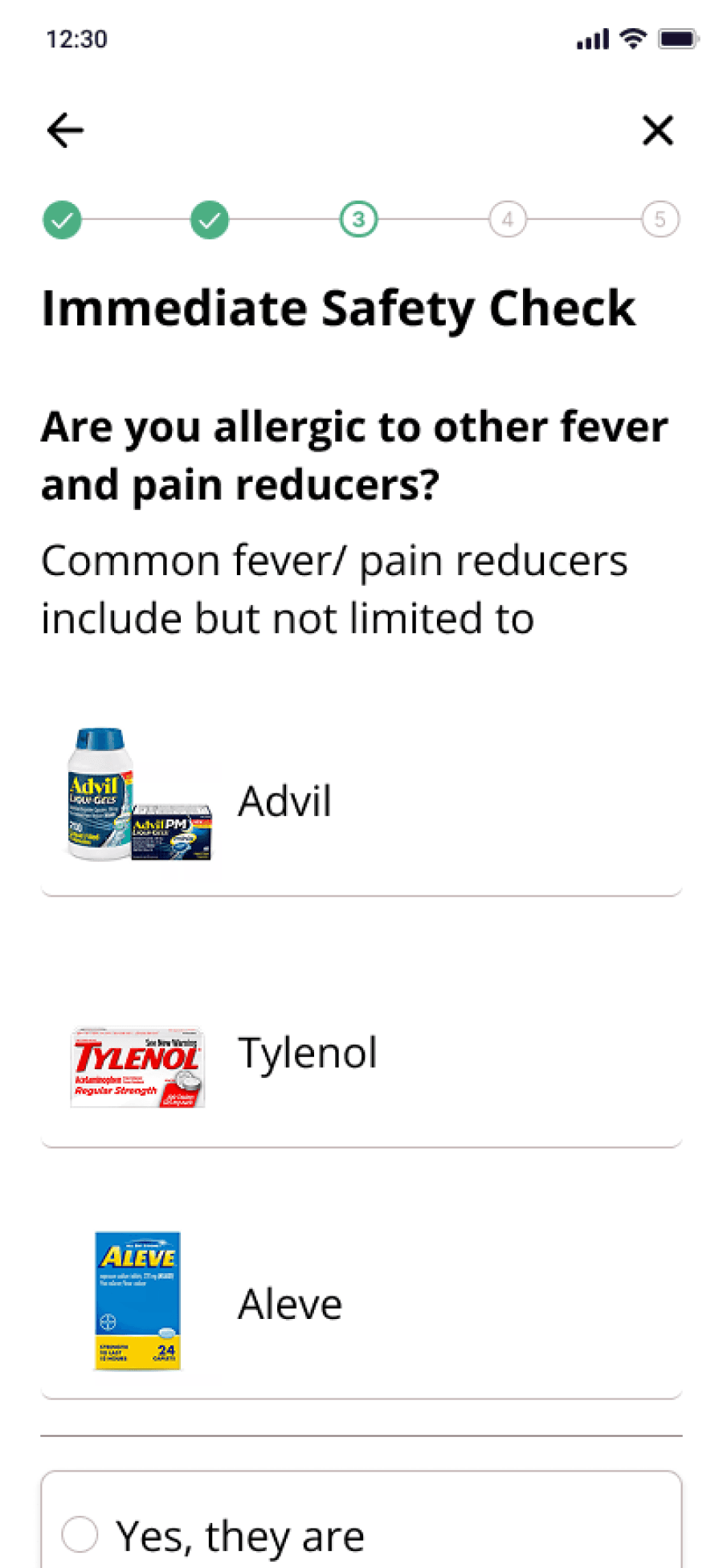 I’ve seen my mother, in her forties, describe medications by color, size, and packaging rather than generic or brand name. So instead of just using medication names, I decided to add actual photographs of pill bottles and medications throughout the intake flow, instead of iconography, prioritizing visual recognition instead of name recall.