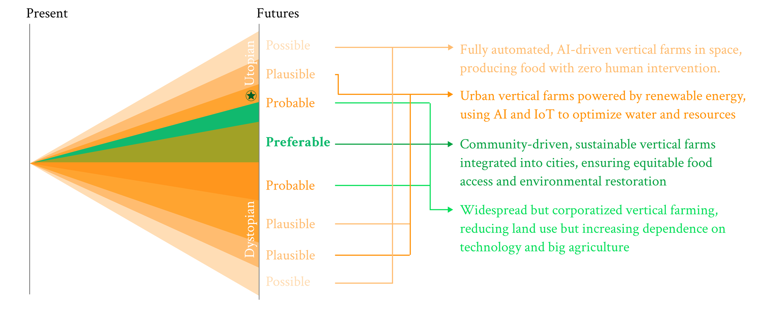 A future-focused vertical farming platform, designed through scenario planning, that empowers urban communities to grow food sustainably in a resource-constrained world.
